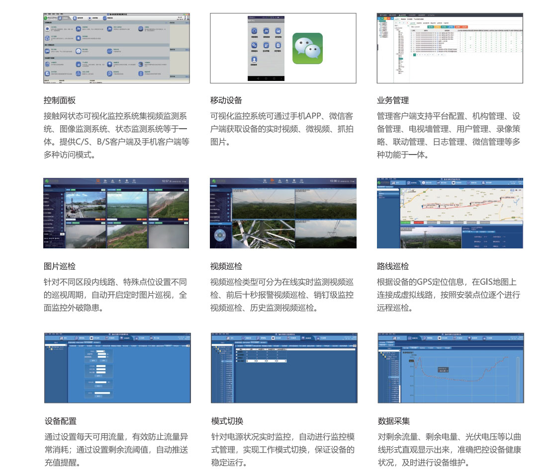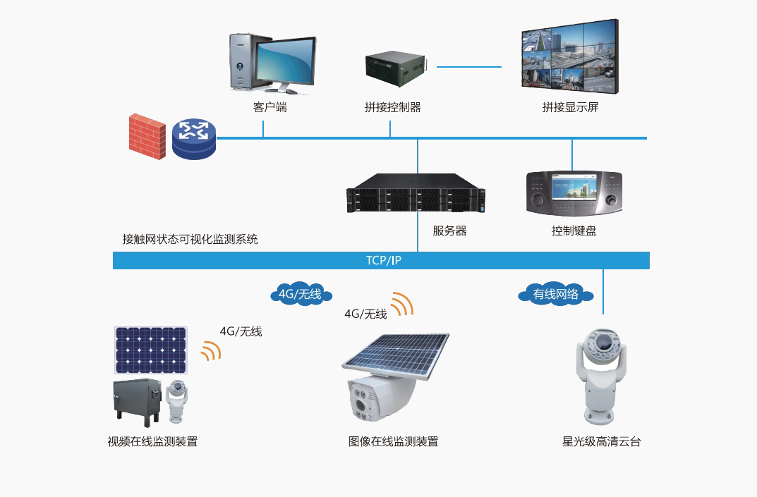 鐵路供電的特點是線路長,地點偏僻,環(huán)境復(fù)雜,單純依靠人工巡檢效果差,安全風(fēng)險大,隱患重重,供電安全直接影響著鐵路運輸?shù)恼V刃颉=佑|網(wǎng)狀態(tài)可視化監(jiān)控系統(tǒng)是一套全方位監(jiān)管電氣化鐵路牽引供電線路的遠程巡檢系統(tǒng),該系統(tǒng)根據(jù)高速鐵路供電設(shè)備運行的安全需求,可對上跨橋、上跨電力線、隧道出入口、大風(fēng)區(qū)等重點位置進行圖像/視頻監(jiān)測,對故障事件起到“早發(fā)現(xiàn)、早預(yù)防”的作用,保障高速鐵路運營秩序,保障電氣化鐵路接觸網(wǎng)高效、安全、可靠的運行